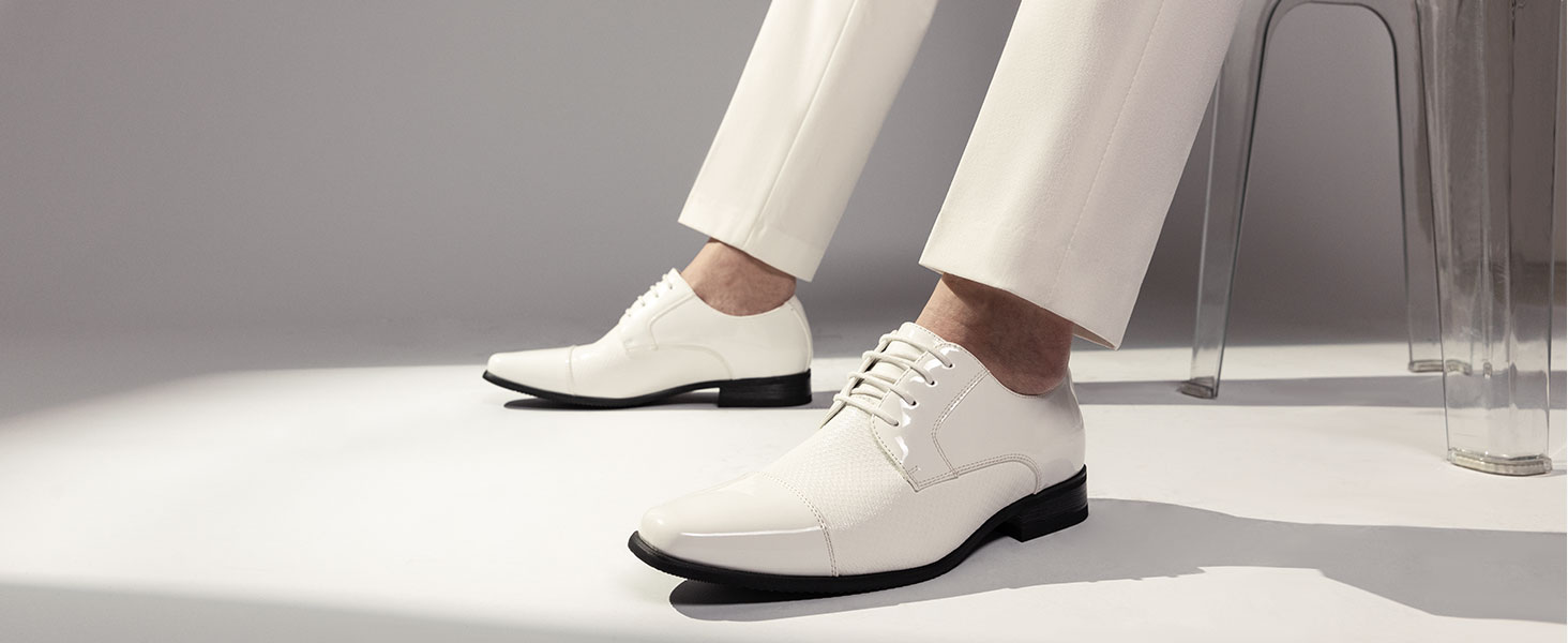 - Unfold The New Style - Leather shoes, in general, are known for extended life, so invest in high-quality men’s leather shoes to satisfy your fashion needs. Among the various men's leather dress shoes, white leather shoes give out a classic appeal. And black leather shoes for men are known for their versatility. Get the lace up formal shoes and pull off your professional look. Do not forget to pair casual men’s leather dress shoes with semi-casual attire which is acceptable for semi-casual events.